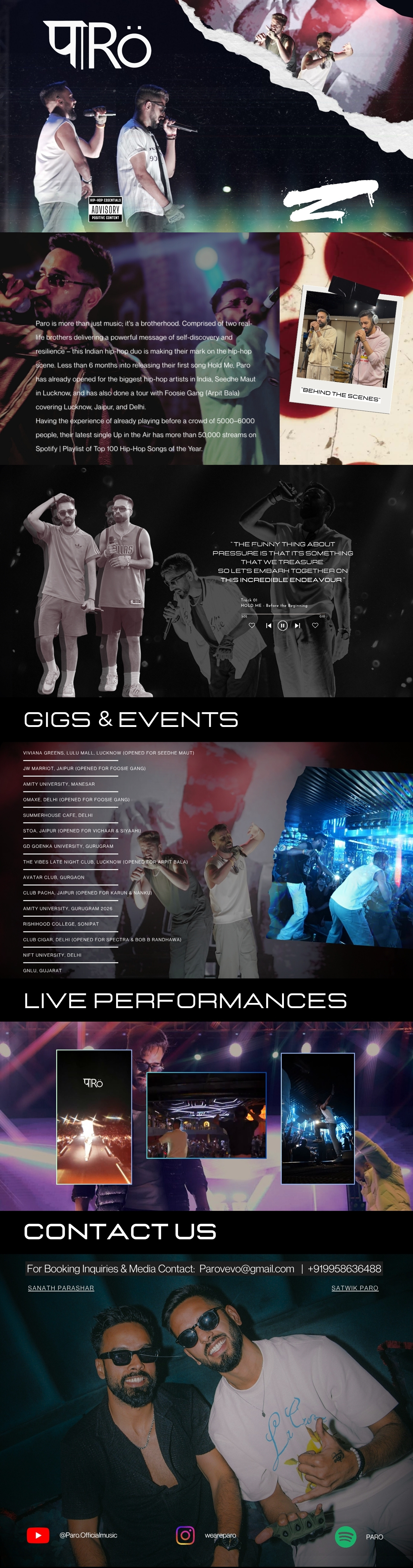 PARO is more than just music — it's a brotherhood. Comprised of two real-life brothers, Satwik and Sanath Parashar, Paro delivers a powerful message of self-discovery, resilience, and elevation to an entire generation.